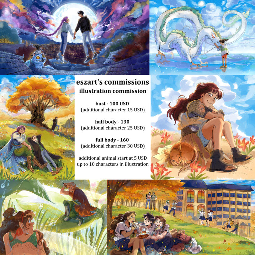 • you can keep up with commissions progress and waitlist through my Trello, it takes me time to update it but it is usually accurate. do consider I’ll be taking more than one commission, I work on other projects (like my comic) and have my personal life so it might take me time to finish.